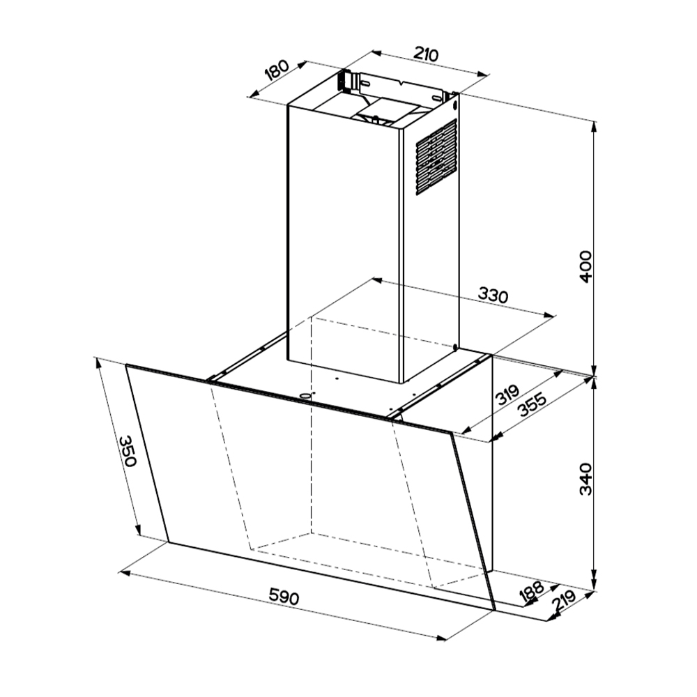 Faber zidna vertikalna napa (crno staklo - 60 cm). Led osvijetljenje.